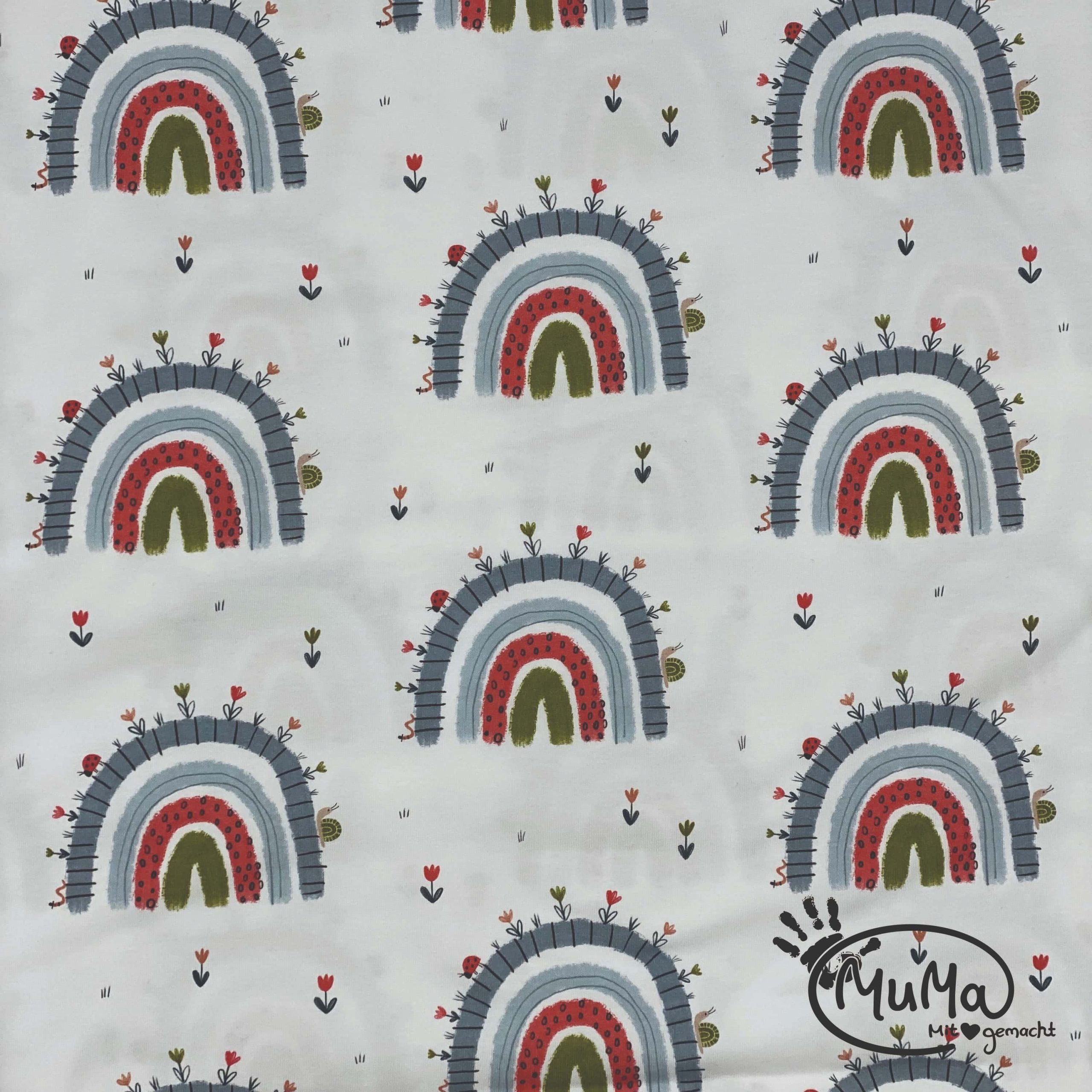 Der Rippjersey, den ich vernähe, hat eine schöne Rippstruktur. Er ist bi-elastisch, dadurch fällt er sehr weich und stylisch. Er besteht aus 94% Bio-Baumwolle und 6% Elasthan, nach ÖkoTex Standard 100 zertifiziert. Ich verwende ihn für Langarmshirts, Kurzarmshirt und Leggings.